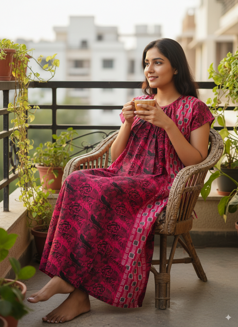Through our nightwear, we offer women everyday comfort with soft, breathable fabrics designed to make you feel relaxed and confident at home.💖 Every product at Rupasi Fashion is thoughtfully created – whether it's the intricate drape of a saree or the cozy simplicity of a cotton nighty.